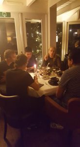 Een gezellige avond, Sander Metz speelde en zong bij binnenkomst mooie Kerst liedjes. Eerst koffie of thee met wat lekkers. Toen alle 38 mensen aanwezig waren opende voorzitter Merel de avond.De champignonsoep werd opgediend en was voortreffelijk, daarna kon een ieder zo vaak als hij/zij wilde naar het buffet lopen om zijn/haar bordje te vullen.Het zag er geweldig uit, mooi opgemaakte vlees en vis salades, allerlei heerlijke vleeswaren en kaas soorten, verschillende soorten brood en broodjes en uiteraard Kerstbrood. Karnemelk, melk en vers geperst sinaasappelsap. Ik heb heerlijk gegeten en een gezellige avond gehad. Tussen de gangen door kreeg Sander Metz de mensen mee met het zingen van bekende liedjes.Na afloop een minuutje stilte voor diegenen die wilden danken voor al het genotene. Merel gaaf aan dat dit haar laatste Kerst maaltijd was als voorzitter, zij geeft in februari het stokje over aan Tineke Hof.